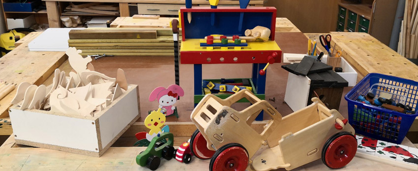 Im Verlauf der Maßnahme erwerben die Teilnehmer einfache Fertigkeiten im Umgang mit Holz und anderen Materialien oder können sich bei Näh – und Kreativarbeiten ausprobieren.